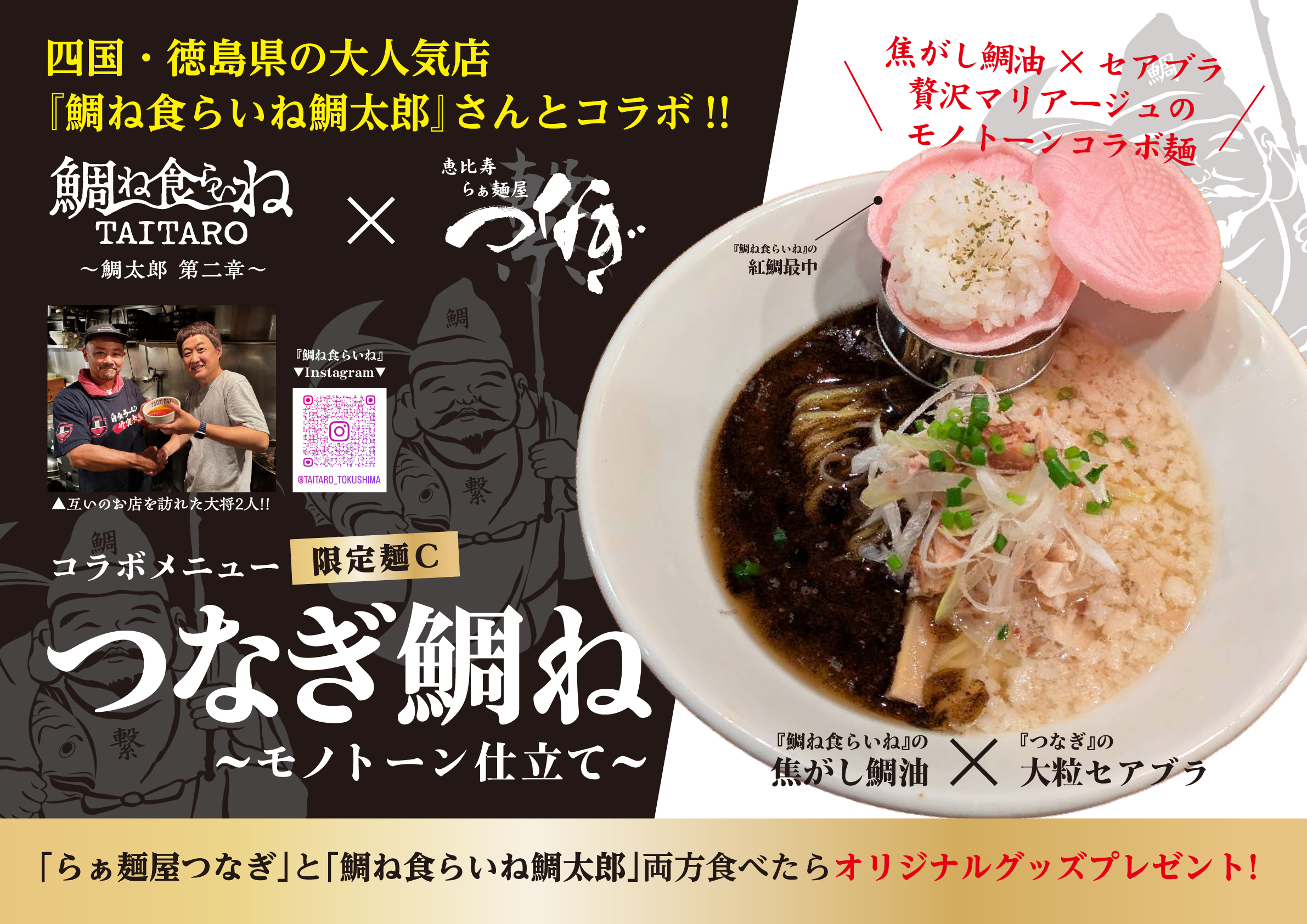 徳島県の人気店「鯛ね食らいねTAITARO」さんとのコラボラーメン